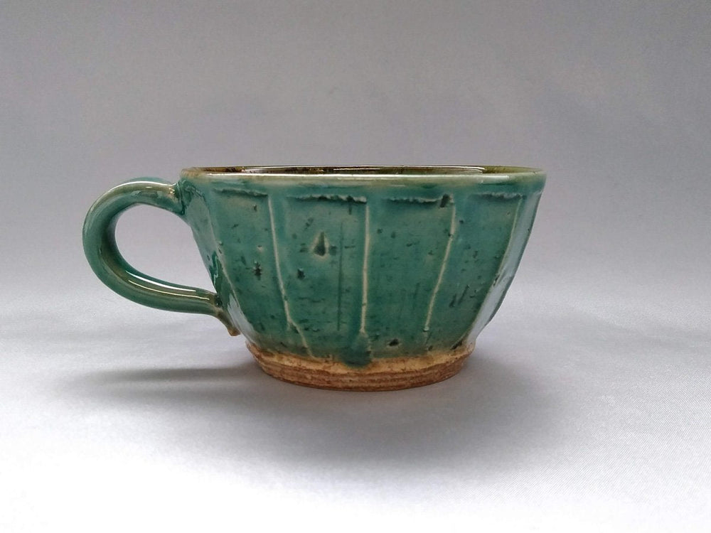 Marked by delicate ceramic crazing, a fine network of lines formed as the glaze cools after firing, the surface evolves over time.
