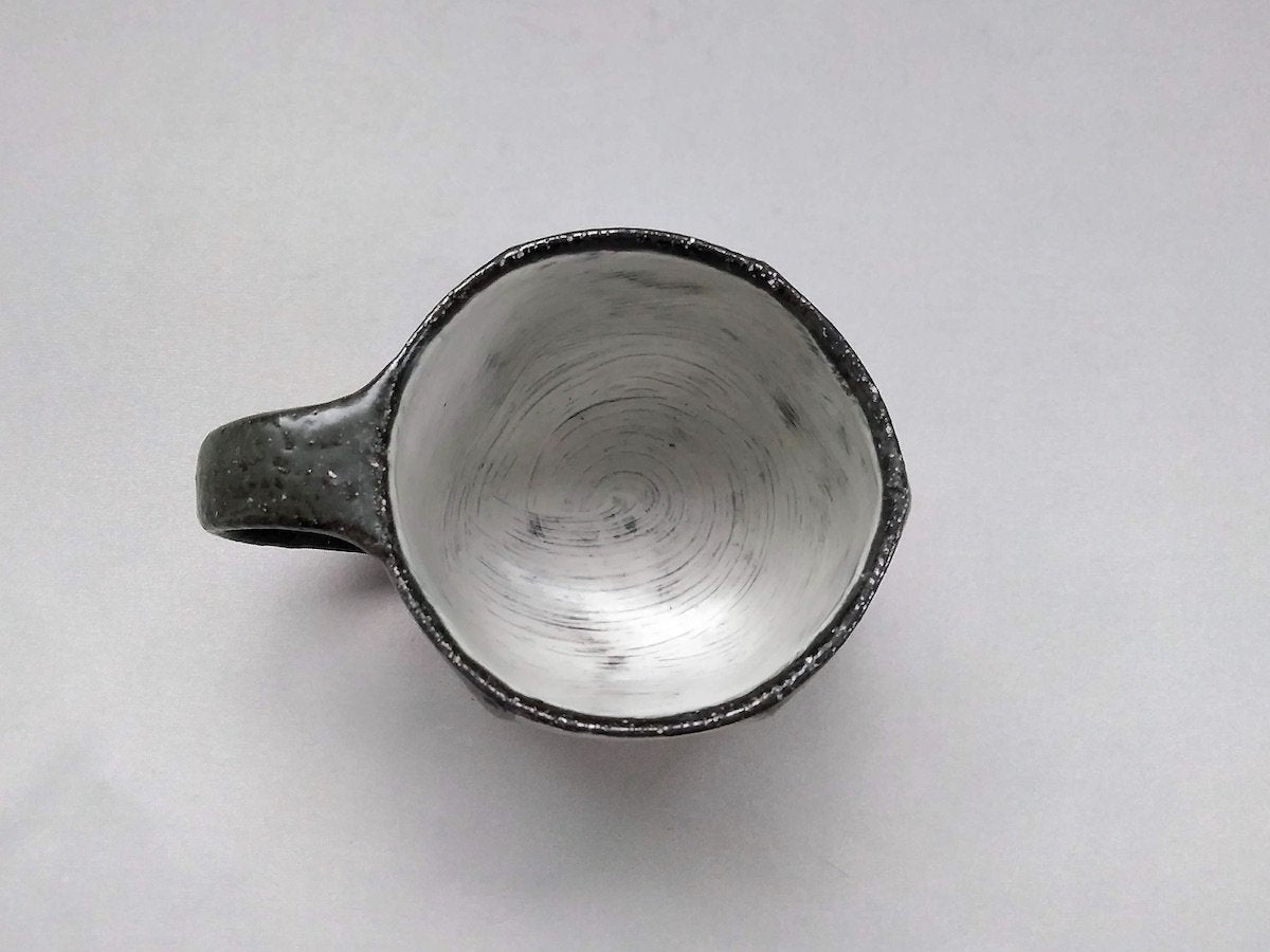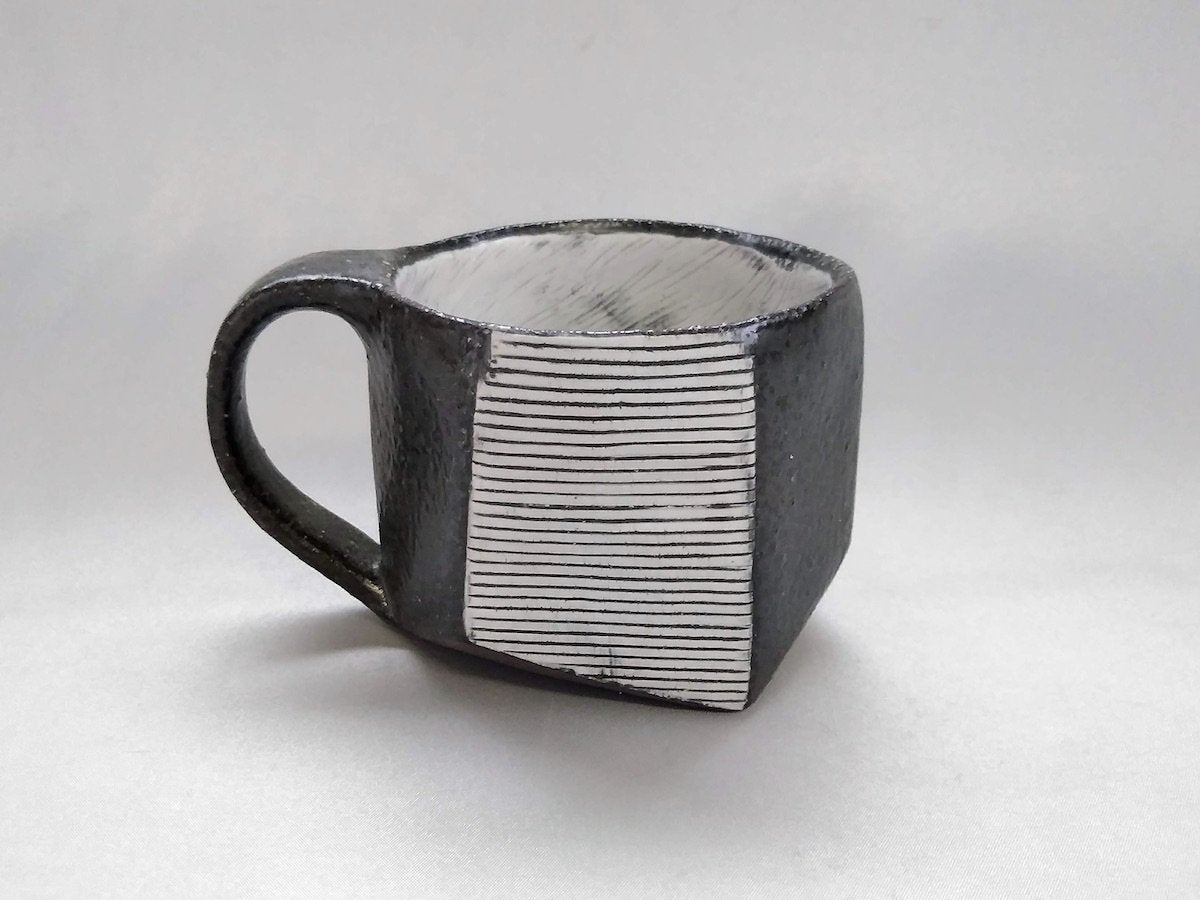 Black Glazed White line Carved Hexagonal Mug - Crafted By Tatsuo Otomo