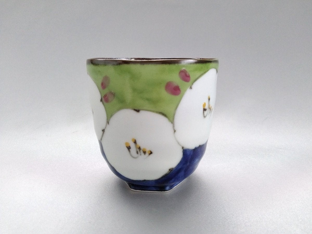 Dark Flower Hexagonal hill Tea Cup Green - Crafted By Fukuho Kiln