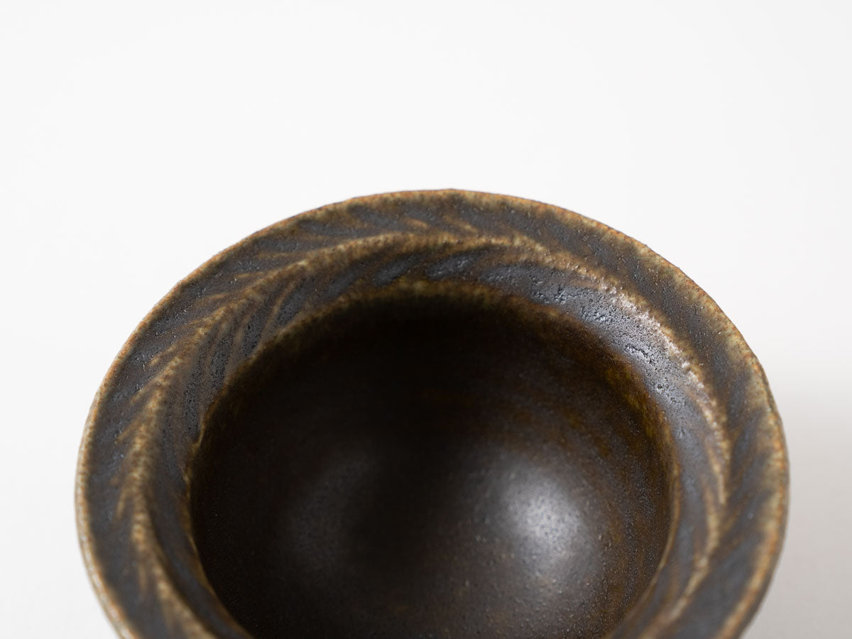 Rust Glaze Leaf Rim Bowl (3-Inch) - Crafted By Furutani Pottery