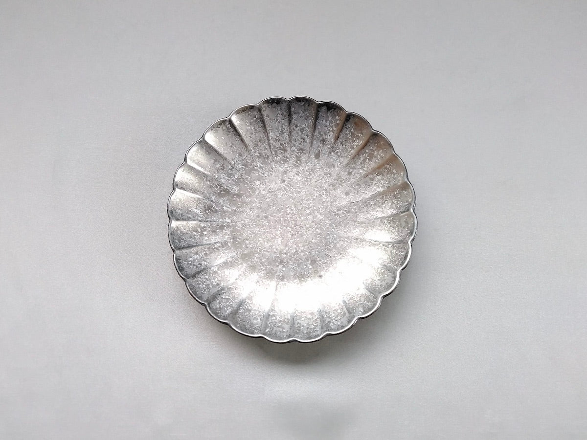 4.5-Sun Plate with Black yuzu and Silver-painted Chrysanthemum - Crafted By Toetsu Kiln