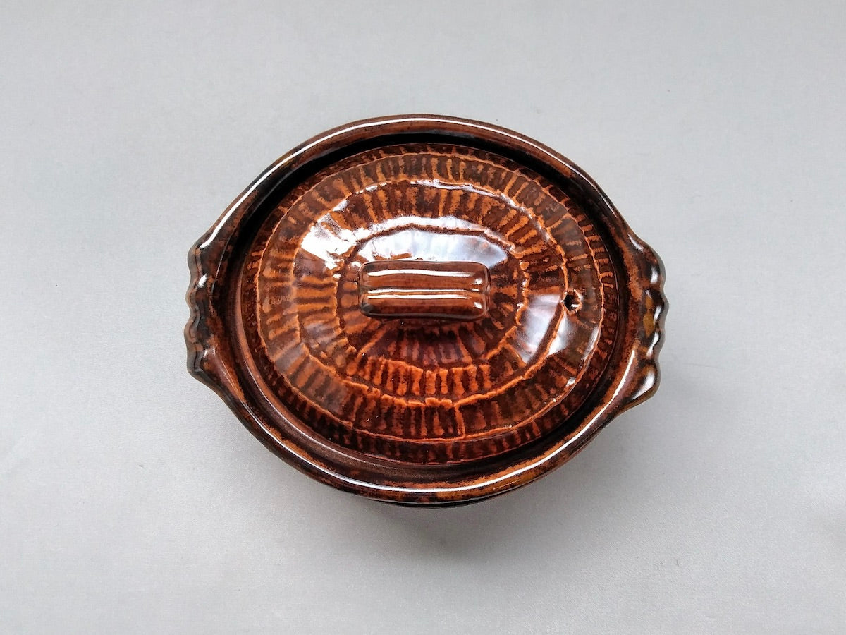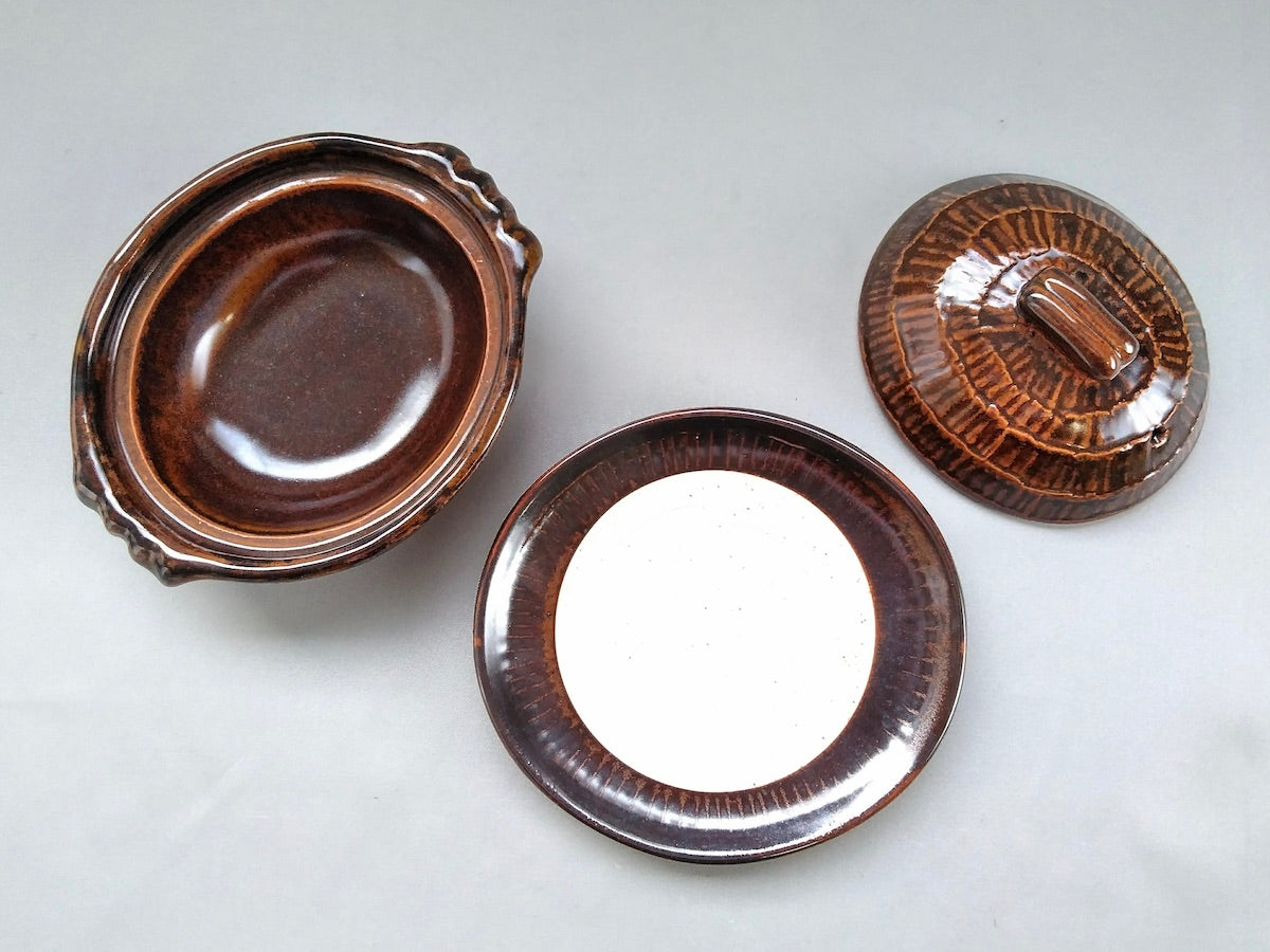 Brown Oval gratin with Plate - Crafted By Anraku Kiln