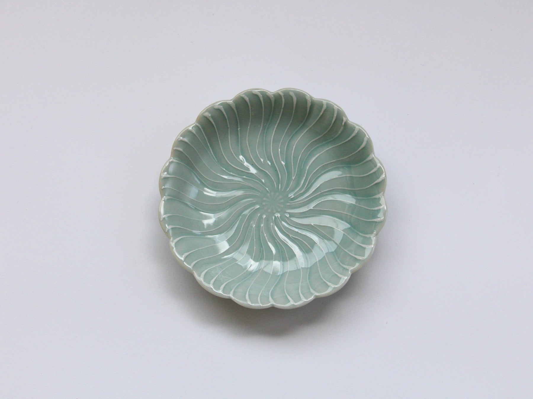 Slip Trailing Petal Flower Plate Celadon - Crafted By Tokushichi Kiln