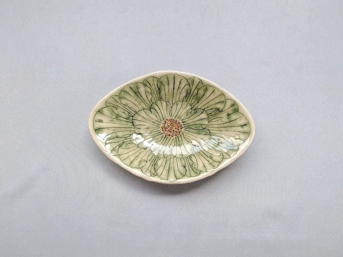 Peony Flower Diamond-Shaped Small Plate Green - Crafted By Yoshihei Kato