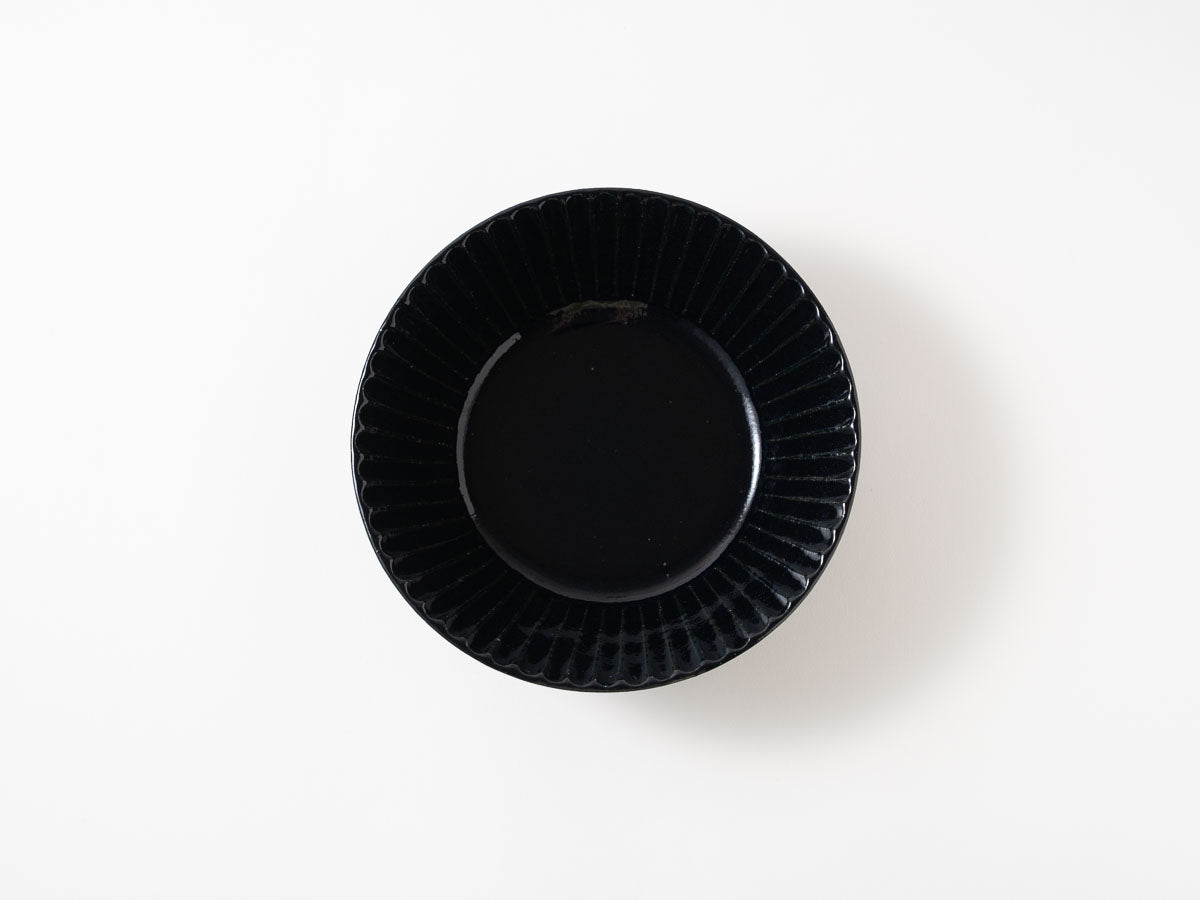 Ruri Glaze Ribbed Flat Bowl (Medium) - Crafted By Hitoshi Kato